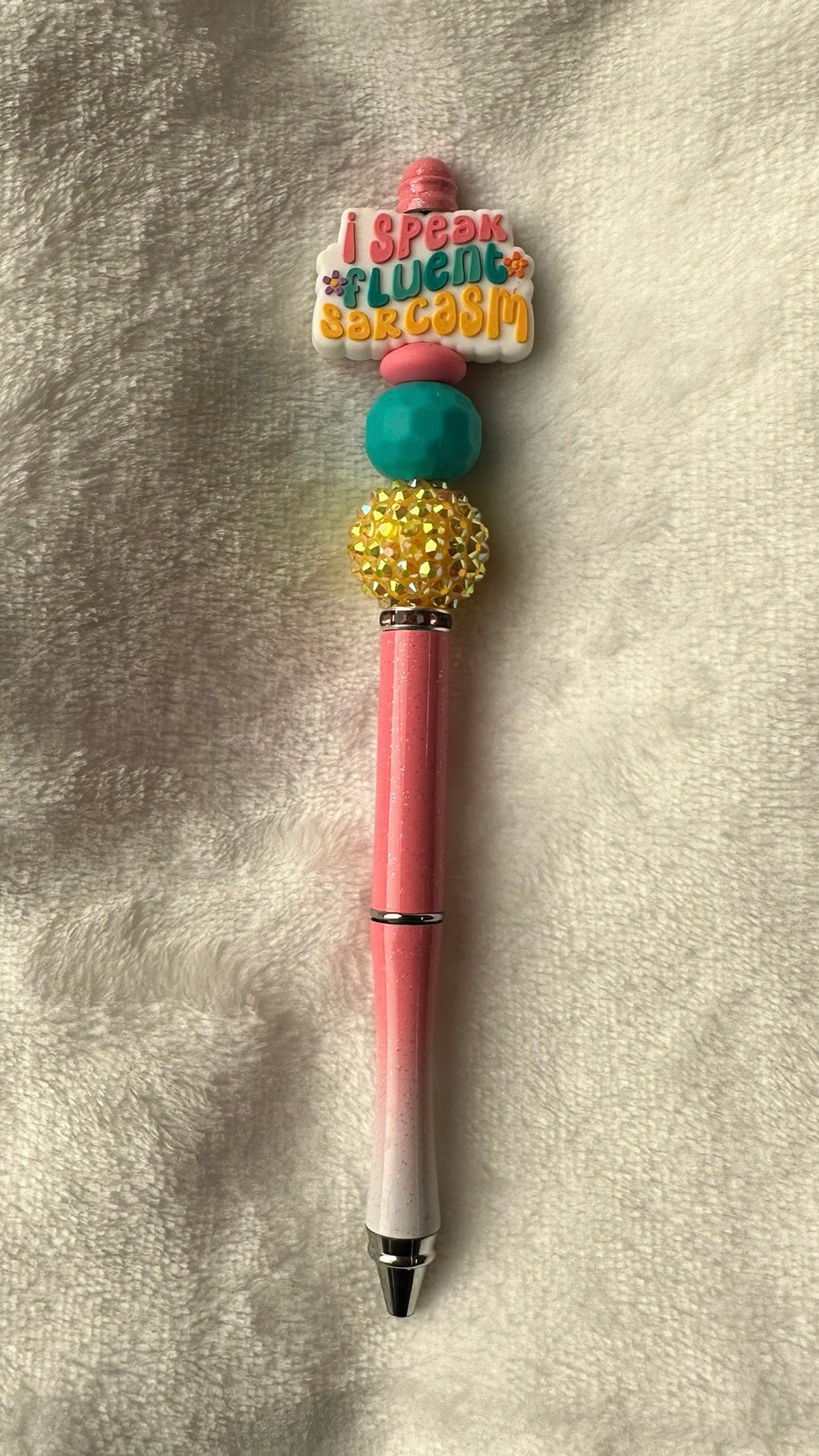 Make a statement with every stroke with our sassy beaded pens, featuring bold acrylic and silicone beads paired with witty, snarky, and laugh-out-loud sayings! These pens are perfect for anyone who loves to keep it real — with a little sparkle, a little sarcasm, and a whole lot of personality.