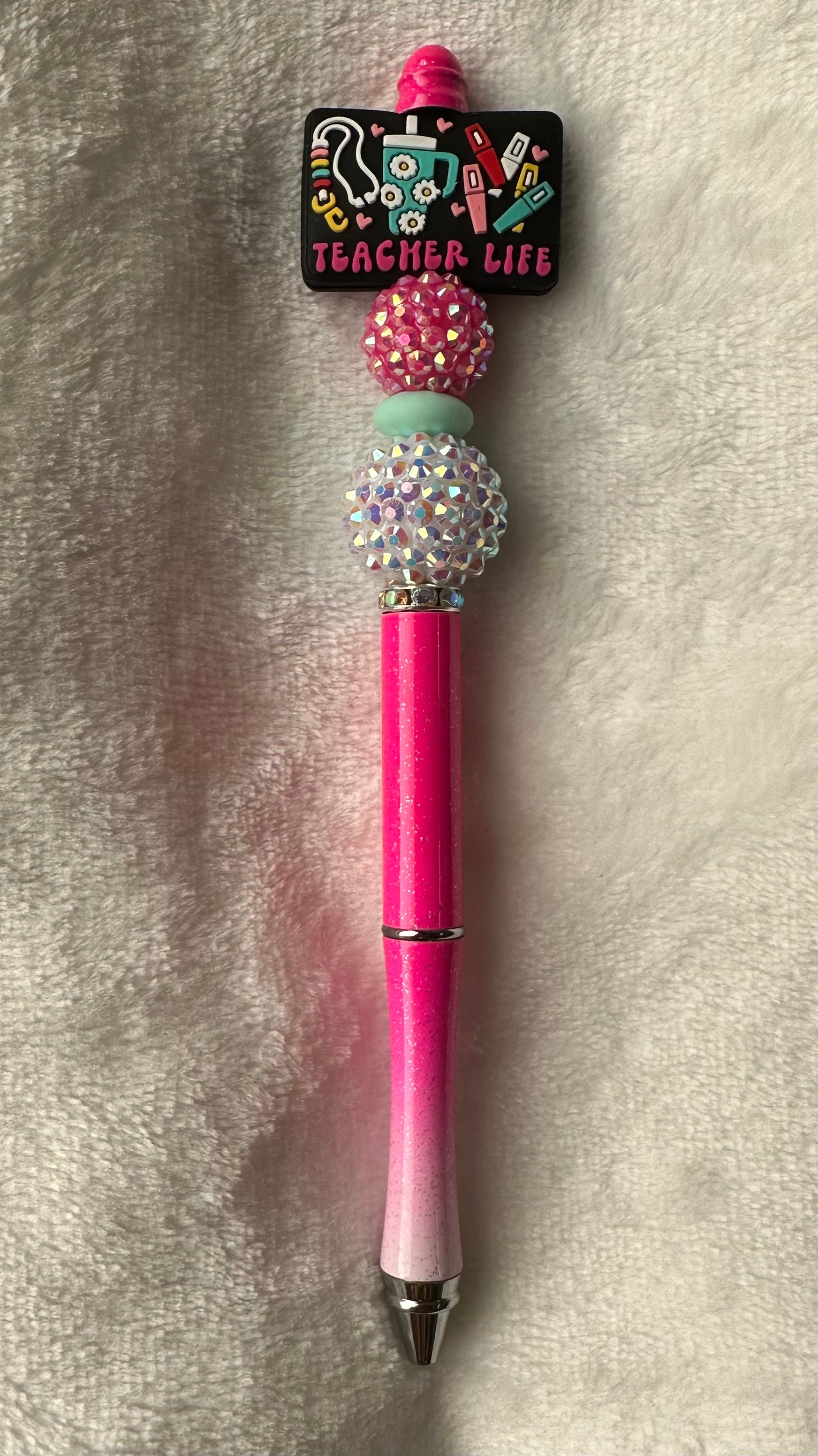 Teacher-Themed Beaded Pens – Acrylic & Silicone Beads