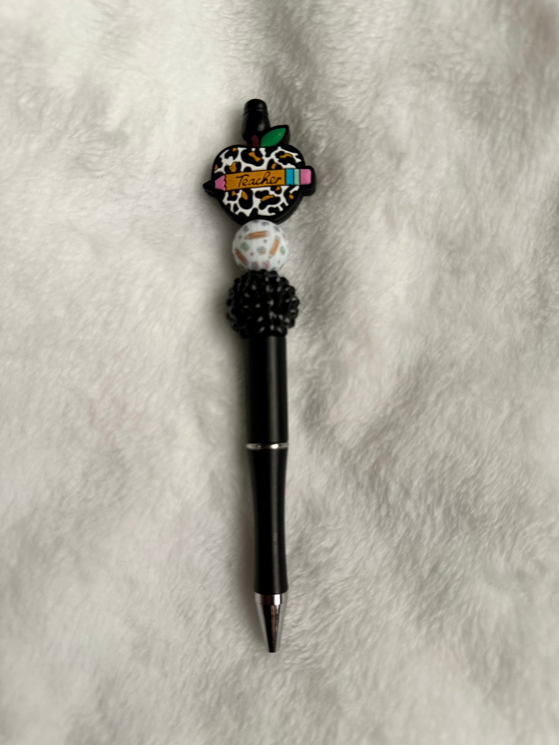 Teacher-Themed Beaded Pens – Acrylic & Silicone Beads